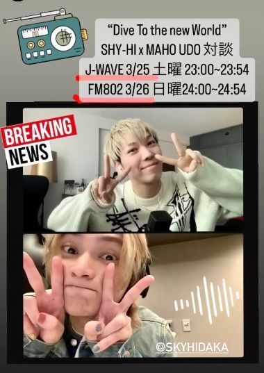 SKY-HI がナビゲートするラジオ番組 DIVE TO THE NEW WORLD にゲスト出演します。